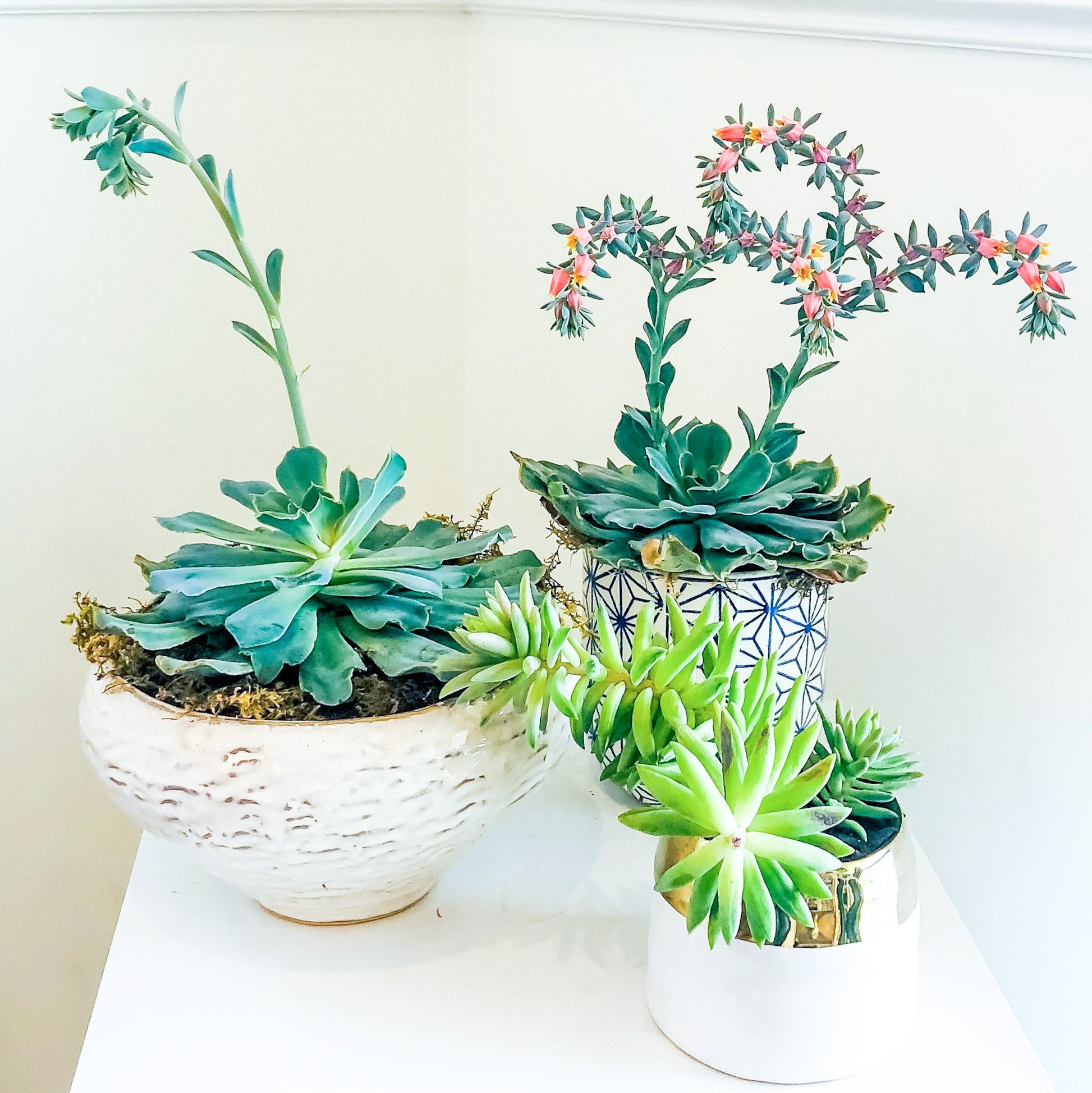 Petite - typically 3-4 succulents in about a 3-4.5" vessel.