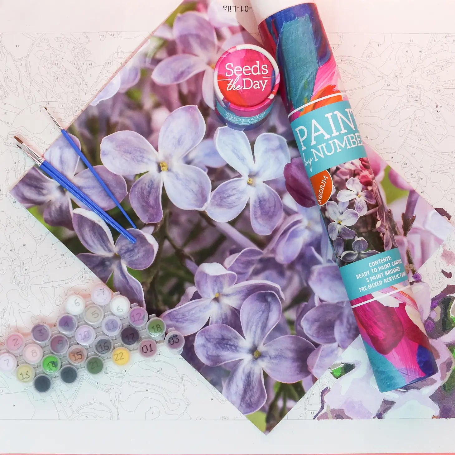 Each kit contains: - 16x20 art canvas pre-labeled with numbers - 3 paint brushes - Wall hanging kit - Pre-measured paint in sealed bags to help prevent drying - Instructions and painting hints Tube dimensions: 19.5" length, 2.5"diameter Seeds the day is a specially curated brand that caters to floral and plant enthusiasts. This is a women-owned brand that started out by selling specialized seed packets and has since expanded to innovative greeting cards with built-in seed packets.