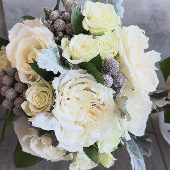 Classic flowers can include: spray roses, stock, alstroemeria, dianthus, hydrangea
